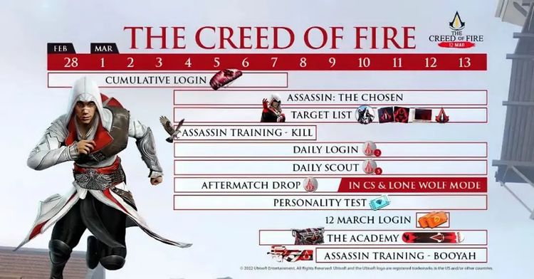 A parceria entre Free Fire e a franquia do jogo Assassin’s Creed irá ter inicio na próxima sexta-feira (04/03).